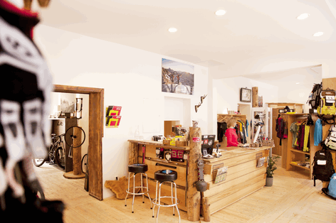 Anprobiert wird in origineller Hütten-Atmosphäre. Ein Schreiner hat den Viennas eine alpine Inneneinrichtung maßangefertigt. Die Tür der Umkleidekabine ziert sogar ein ausgesägtes Herzchen mit Karogardine. Fahrräder stehen natürlich im Mittelpunkt, von Liteville, BMC und Ibis – Marken, die man nicht an jeder Ecke findet und deren Käufer auch keine Anfänger mehr sind. Daher wollen und können sie auch ein paar Euro mehr für ihre teils sogar maßangefertigten, aus individuellen Komponenten zusammengestellten Bikes ausgeben. Testen, bevor man kauft, darf man die edlen Räder auf Wunsch auch im Wald – allein oder in Begleitung der Experten. Für die Bikes ist auch ein Reparaturservice mit eingeschlossen. „Wir reparieren tatsächlich nur Mountainbikes“, sagt Jan Vienna. „Das bedeutet auch kurze Wartezeiten und umfassenden Service“.