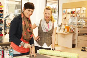 Sie sind eigentlich keine hundert Meter weiter gezogen: Noch „ zu Hause“, aber doch ist es ein großer Unterschied, finden die Jungunternehmerinnen Laura Wolf und Ann-Kathrin Fischer. Die beiden haben sozusagen ein „Joint Venture“ gegründet und sind nach den ersten Wochen bereits vollauf zufrieden. Bis vor kurzem hatten sie je einen eigenen Laden mit süßen Stoffsachen, ein Stückchen weiter in der Oberen Webergasse. Die beiden Designerinnen und Mütter hatten sich als Geschäftsnachbarinnen kennen gelernt. „Wir ticken absolut gleich“, sagt Laura Wolf: „Wir haben einen ganz ähnlichen Geschmack, haben immer die gleichen Stoffe bestellt“.