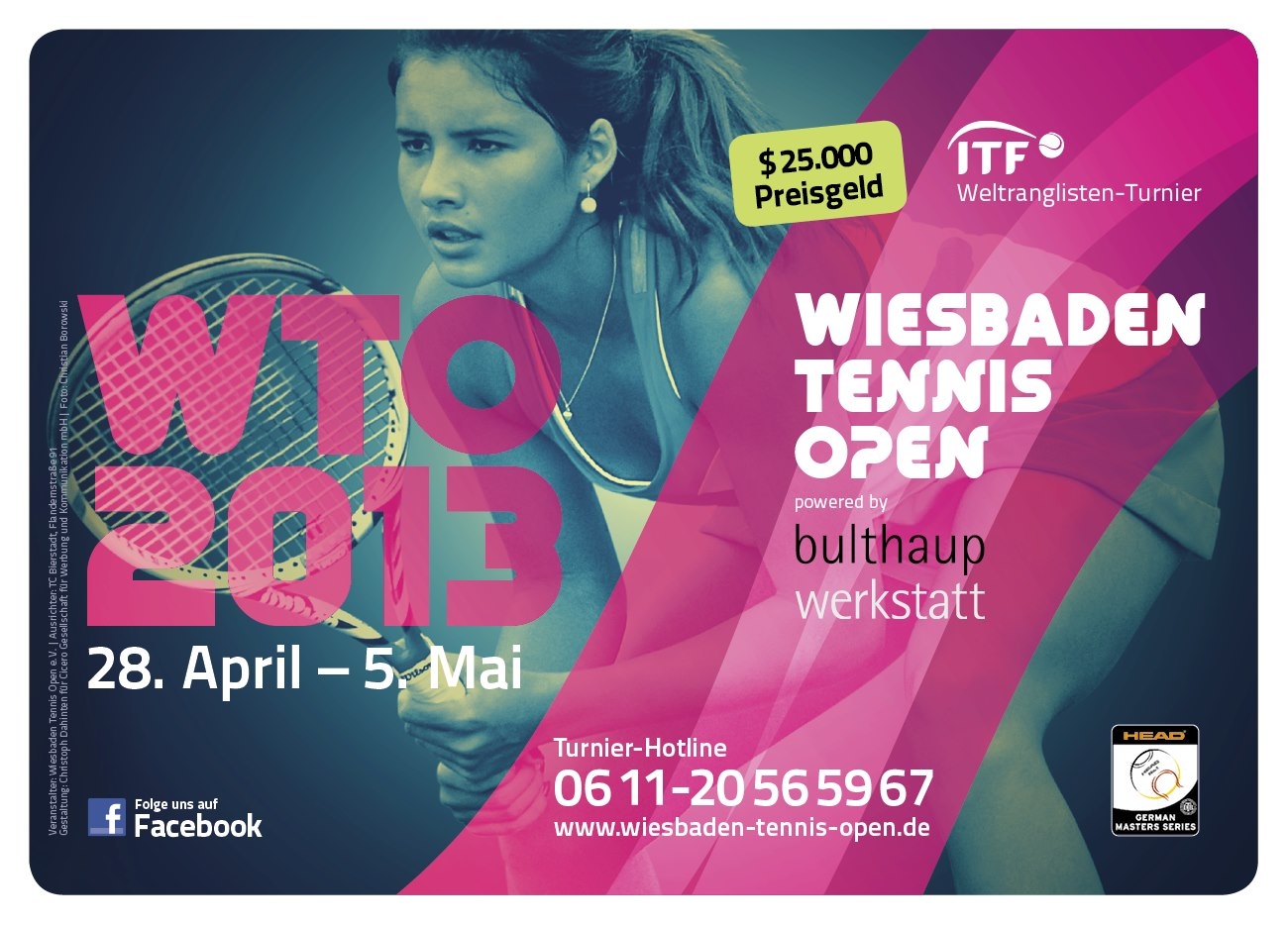 Die Wiesbaden-Tennis-Open finden bis zum 5. Mai zum fünften Mal in ihrer jetzigen Form, auf Anlage des Tennis Club Bierstadt statt. Es sind wieder knapp 100 Topspielerinnen aus über 20 Ländern vor Ort, die dem Publikum hochklassigen Tennissport präsentieren und bis Sonntag um ein Preisgeld von 25.000 Dollar und Punkte für die Weltrangliste kämpfen. Das „Match of the Day“ läuft gerade. Morgen am Samstag startet um 13 Uhr das Halbfinale, am Sonntag, 5. Mai, dann ab 14 Uhr Finale mit Siegerehrung und Rahmenprogramm. Stärken können sich die Besucher im neu eröffneten Club-Restaurant Smoke Tribe mit Barbecue-Spezialitäten aus den Südstaaten der USA und anderen Leckereien. www.wiesbaden-tennis-open.de , www.tc-bierstadt.de