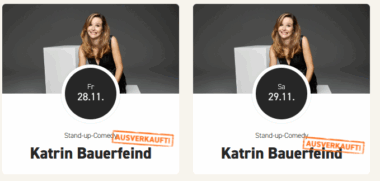 23. November 2025 | Katrin Bauerfeind im Studio ZR6 !Achtung! Weil Katrin Bauerfeind keine Gästeliste benötigt, sind für nächste Woche Freitag und Samstag jeweils 10 Tickets frei geworden First Come, First Server ! https://www.eventim-light.com/de/a/590b06a84de2fc04d2dc635f/ teilen teilen teilen teilen Schreibe einen Kommentar Antwort abbrechenDeine E-Mail-Adresse wird nicht veröffentlicht. Erforderliche Felder sind mit * markiertKommentar * Name * E-Mail * Website Meinen Namen, meine E-Mail-Adresse und meine Website in diesem Browser für die nächste Kommentierung speichern. Notify me of follow-up comments by email. Notify me of new posts by email.