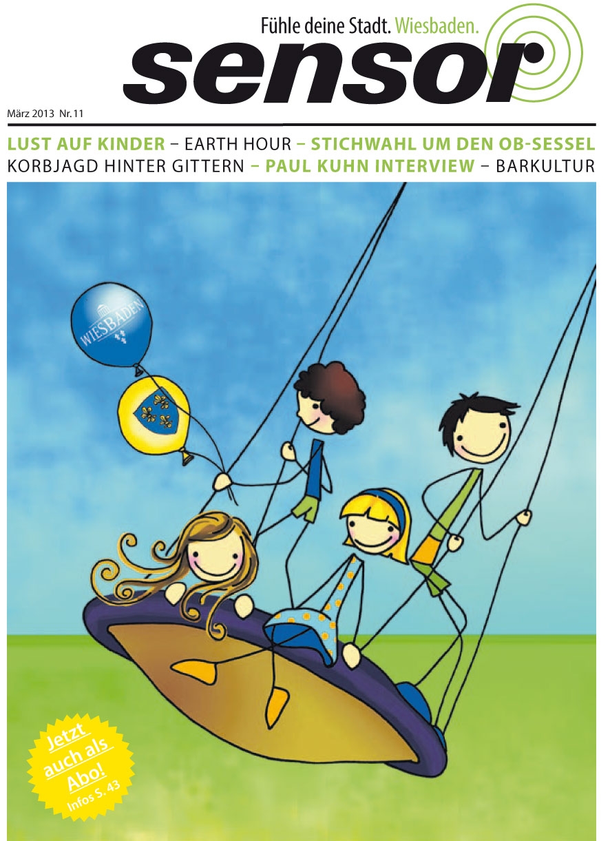 Im druckfrischen März-sensor wimmelt es nur so vor tollen Kindern (und ihren Eltern). „Lust auf Kinder“ lautet des Titel- und Schwerpunktthema der heute erschienenen Ausgabe. Außerdem auf 44 Seiten: aktuelle Berichterstattung zur großen Überraschung bei der OB-Wahl, zur Earth Hour für den Klimaschutz mit der 1. Wiesbadener Earth Hour-Party, exklusive Reportagen über Basketball im Jugendknast und täuschend echte Tatortwelten sowie das große 2×5-Interview mit der Jazzlegende Paul Kuhn, inklusive „Drogengeständnis“ des fast 85-jährigen. All das und vieles mehr für Euch wie immer 20.000-fach kostenfrei an rund 1.000 Auslagestellen in der ganzen Stadt, ab sofort abholbereit bei uns im Pressehaus, Langgasse 21, beim Pförtner und im Kundencenter und als Abo: www.sensor-wiesbaden.de/abo