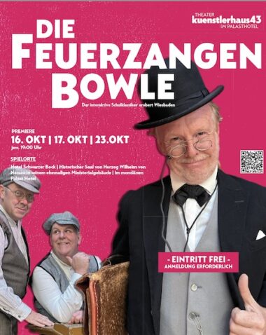 „Also wat is’n Dampfmaschin?“ – Wer diesen Satz kennt, weiß: Die „Feuerzangenbowle“ ist mehr als nur ein Filmklassiker. Jetzt wird die Geschichte um den Pennäler Hans Pfeiffer mitten in Wiesbaden lebendig – und zwar als interaktive Theaterinszenierung im Historischen Fünfeck.