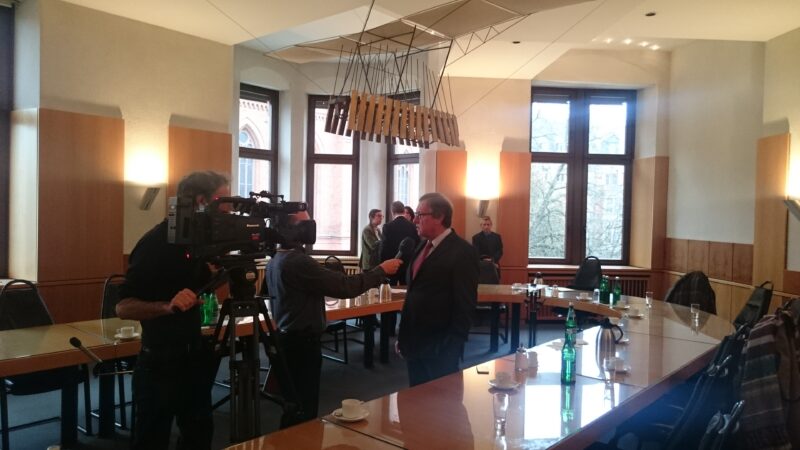 Einen Seitenhieb auf Medien und Oppositionspolitiker wollte er sich hingegen nicht verkneifen und bemerkte im Verlauf der Pressekonferenz süffisant, dass er überhaupt nicht verstehen könne, wie man den ursprünglichen Grundstückskauf als „Hinterzimmer-Deal“ bezeichnen könne. Schließlich hätte seinerzeit die Mehrheit der Stadtverordneten dem Geschäft zugestimmt. Einen kleinen Einblick in sein Demokratieverständnis gewährte er, als er darauf hinwies, dass er es in seiner aktiven politischen Zeit einfacher gehabt habe als seine Kollegen in Wiesbaden: „Wir hatten nie Koalitionspartner.“ Zum aktuellen Stand der Dinge herrscht bei den Wiesbadener Großkoalitionspartnern größte Einigkeit. Kurz nach der Pressekonferenz vermeldete eine Pressemitteilung: „Fraktionsvorsitzende der Großen Koa begrüßen einhellig sich anbahnende Einigung mit OFB. Die sich abzeichnende Einigung sei nach Ansicht der Vorsitzenden der Fraktionen der CDU und der SPD in der Stadtverordnetenversammlung, Bernhard Lorenz und Christoph Manjura, der richtige Schritt, um die Chance einer positiven Entwicklung des Grundstücks an der Wilhelmstraße zeitnah zu ergreifen.“